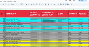 Cell background color is changed as needed based on the values of other cells (e.g. if there is a checkmark, the content of a cell, etc).